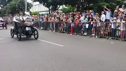 In 1999, the festival reached 482 silleteros participants.[5] The 2006 edition also featured a new category of silleteros. Maria Isabel Lopez, spokeswoman for the Convention Center Bureau of Madrid, described this new category: "these are the Pioneers, who will show all their Silletas making experience, but will not participate in the contest."[6] Some 50 peasants carried the silletas; 260 featuring traditional arrangements, 50 brandishing advertisements and 28 from the new Pioneer category. Keeping with tradition, the Mayor of Medellín sponsored the awards of the contest. In 2006, there were a total of 260 awards, selected and given by three juries.[6]