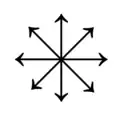 The squire moves 1 space orthogonally followed by 1 space diagonally. It may move through either vacant or occupied spaces. This is comparable to the knight's move in chess. |