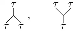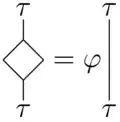 Due to the existence of a morphism , the Fibonacci category naturally also lends itself to defining invariants of a generalization of links that allows for degree 3 vertices ("branchings").[34] These invariants can also be defined using generalized Skein relations.[33][34] To do this, one chooses some distinguished morphisms and , depicted visually below.