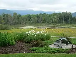 Field Farm is a 316-acre (1.28 km2) nature preserve and farm in Williamstown, Massachusetts, managed by the Trustees of Reservations. There are 4.5 miles (7.2 km) of hiking trails on the reservation, which pass by swamp land, a pond, and the "Caves Lot" which features underground channels that water had cut into the limestone there.[1] An International Style house, built in 1948 by Edwin Goodell, is operated as a bed and breakfast inn.[2] Also on the site is The Folly, a small guest house designed by Ulrich Franzen in 1966. The Folly is currently open for guided tours. The property also contains a sculpture garden.