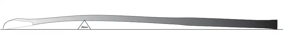Since this article was first written in 2008, there have been attempts to get around the rule by the production of a stick which 'in a natural resting position' has a face side that is not parallel to the flat surface measured from but rests with the face at a sharp angle. The result of the sloping of the face side is to put one edge of it closer than 25 mm to the flat surface and permit a much deeper bow than would otherwise be possible. This flouts the intention of the rule, so it is possible that there may be a move to a measuring cylinder, under and across, the entire face of the stick.