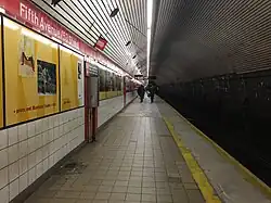 The southbound platform contains an exhibit called The Subway: Design for a Modern Icon, developed by the MTA in conjunction with MoMA.[36] Installed in January 2020, it contains excerpts of icons used throughout the New York City Subway system.[37][38] These include several pages of the "New York City Transit Authority Graphic Standards Manual", portions of the 1972 New York City Subway map, a visual timeline, and quotations.[36]