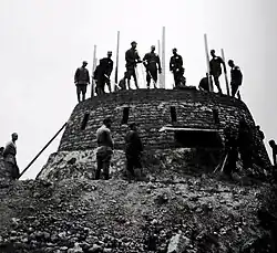 Between 1933 and the autumn of 1934, the Nationalist Army reportedly constructed 14,294 blockhouses across the front, with the highest concentration around Fuzhou. A defensive line was formed stretching some 400 kilometres from the eastern boundary of Lichuan to the western approaches of Ji'an and Jizhou, sealing off key transport routes into the Jiangxi Soviet. In eight counties alone— Yihuang, Nancheng, Le'an, Lichuan, Jinxi, Chongren, Zixi, and Nanfeng—over 2,000 blockhouses were established.[9]