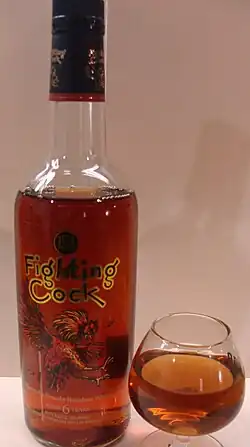 Fighting Cock is a brand of Kentucky straight bourbon whiskey produced in Bardstown, Kentucky by Heaven Hill Distilleries, Inc. It is sold in 16 oz (1 pint or 375 ml), 750 ml, and 1-liter glass bottles.