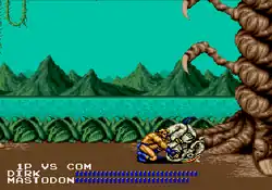 In single-player mode, players can choose from twelve playable characters and fight against computer-controlled fighters. Three buttons are available in the game: block (A), attack (B) and jump (C).[3][4] The d-pad cannot be used to jump directly, instead, players have to walk in a certain direction and press the jump button to perform said action. The attack button allows players to perform various attacks, special moves and combos. Besides the single-player mode, other modes include matches against another human opponent or a watch mode to view a fight between two CPU-controlled opponents.[3]