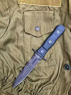 A fighting knife has a blade designed to most effectively inflict injury in close-quarters physical confrontations.[1][2][3][4] The combat knife and the trench knife are examples of military fighting knives.[1][5]