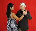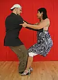 | Overturned gancho (gancho nuevo) | The follower places her leg between the leader's legs. This move can be led from overturned back ocho. See also enganche. | |||