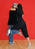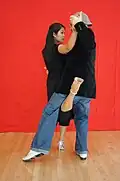 | Enganche | Leg wrap | One or both dancers wrap his or her leg around their partner's leg. This wrapping is often sustained or frozen for a moment in time. See also gancho and high leg wrap. | ||