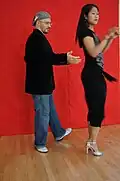 | Pareja tomada | Practice embrace | She holds his arms in practice position. | |