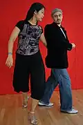 {{cite book}}: CS1 maint: multiple names: authors list (link) (trap sacadas, wrap sacadas, drags, basic ganchos, 3 ganchos, 4 ganchos, gancho boleo, carried gancho, enganches) - ^ Gavito, Carlos; Duran, Marcela (2000). Un tal Gavito (Someone called Gavito), Classes de tango, DVD and tape, Vol. 1. MusicMedia Productions. (salida in two steps, salida or basic step, cadence with woman's sweep, walking on the edge of the roof, the corkscrew, walk with sacada and boleo (role of the knee), walking on both sides of the woman, cadence with turn, "fan" with barrida sacada and boleo, enrosque with walk).