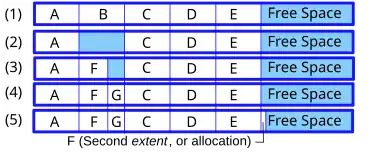 A file becomes fragmented if space needed to store its content cannot be allocated in contiguous blocks. Free space becomes fragmented when files are deleted.[11]