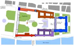 The guards are positioned during the nights of 9 August to 10 August in various posts. The Filles de Saint Thomas Battalion is stationed near the flag of Marsan of the national grenadiers, on the first floor of the Grande Galerie in two rows, one facing the Seine and the other towards the court of the Princes. The gunners are located in the three courts. There are five pieces of cannons in the royal court, located between the door and the entrance to the vestibule, flanked by a battalion of National Guards on one side and a battalion of Swiss Guards on the other. The same number of rooms is placed in front of the central pavilion on the garden side. Finally, the National Guards were stationed at the Pont Neuf and under the Saint-Jean arcade, place de Grève. They also guard the exits from the Terrasse des Feuillants.