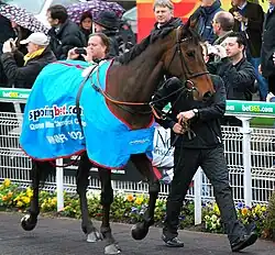 ![]() Finian's Rainbow in the Champions Parade at Sandown on bet365 Gold Cup Day, 28 April 2012 | |