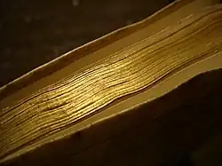 Early codices, such as Coptic bindings, had relatively simple finishing, including blind tooling and leather strips woven through covering material.