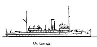 Uusimaa was a gunboat that served in the Finnish Navy during World War II. She was built in 1917. As the ship (like her sister ship Hämeenmaa) had changed hands many times during the turbulent last years of World War I she had been renamed many times: In Russian service, she was called Golub, later, in German service, her name was Beo. Finally the Germans handed her over to the Finns in 1920, who renamed her Uusimaa. After World War II, she served as a trawler in the Baltic Sea. She was scrapped in 1953.