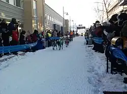 The first Finnmarksløpet was hosted in 1981 with only one "open" class and a total of three teams entering the first race. Over the years, the race has experienced substantial growth, both in terms of participants and audience. In 1985, a second "limited" class was introduced. By 1992, the race distance was extended to 1,000 kilometres (620 mi), with the open class setting a maximum of 12 dogs, while the limited class was restricted to 8-dog and a distance of 600 kilometres (370 mi). In 2000, the open class was expanded further to include up to 14 dogs, and the limited class distance was reduced to 500 kilometres (310 mi).[1] In 2018, the open class was further extended to its current length at 1,200 kilometres (750 mi), making Finnmarksløpet the longest sled dog race in Europe and the second longest sled race in the world.[1][2] A junior class open to mushers 14 to 18 years of age has also been added, with a distance of 200 kilometres (120 mi).[1] The 2021 race was canceled due to the COVID-19 pandemic.[3] In 2025, the open class was shortened to 1,107 kilometres (688 mi) due to warm weather and parts of the course not sufficiently freezing.[2][4]