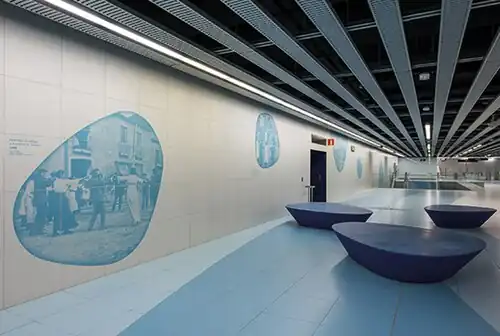 The station opened for passenger service on 12 February 2016, when the 20-kilometre-long (12 mi), 15-station portion belonging to Barcelona Metro line 9 between Barcelona–El Prat Airport and Zona Universitària station in western Barcelona started operating. Designated L9 Sud ("L9 South"), the new Barcelona Metro line 9 section offers a regular service frequency of 7 minutes in each direction, though additional partial services may be added if necessary.[2]