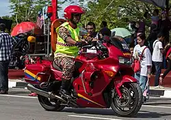 Rapid Intervention Motorcycle Team (RIM) was formed in 1999 to tackle problems of late arriving rescue caused by traffic jammed in the big city.[14] With superbikes equipped with basic Firefighting and rescue equipment, RIM team can handle small scale fire and Road and Traffic Accident (RTA) without having traffic problems.[15] During bigger scale of fire, RIM team will arrive early and assess the size and type of incident, building, and materials involve and victim if any. RIM team also will help control the traffic for the fire truck movement.