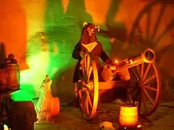 The original concept of the ride relied heavily upon Marvel Cave itself. During the planning phases of Fire in the Hole the ride was referred to as The Devil's Den. This was a name given to the cave centuries before mining operation had started. The ride was to include volcanoes and exploding geysers. However, modifications were eventually made and the ride took on its current form.