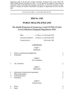 - "Tier 1": The Health Protection (Coronavirus, Local COVID-19 Alert Level) (Medium) (England) Regulations 2020 (SI 2020/1103)
