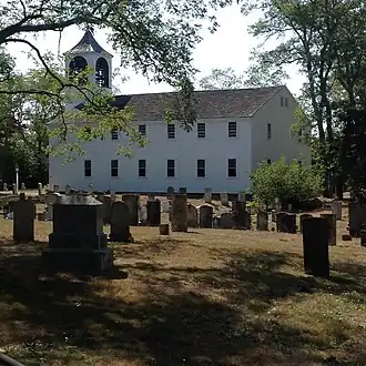 The First Congregational Parish Historic District encompasses the oldest church building in Truro, Massachusetts and adjacent historic resources. The congregation was established in 1711, and is now occupying its third church, a Federal/Greek Revival building erected in 1827. The tower houses a bell cast by Paul Revere.[2] Adjacent to the church and part of its setting is the Congregational Cemetery, whose earliest recorded burial is in 1810, and has been associated with the church since its construction. The cemetery contains a memorial erected in 1841, commemorating the loss of 57 Truro residents and seven ships in a gale on October 3. 1841.[3]