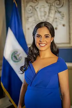 The country's current first lady is Gabriela Rodríguez de Bukele, wife of President Nayib Bukele, who has held the position since 1 June 2019.[1]