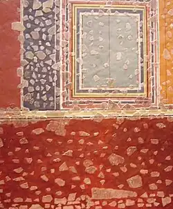 The decoration of the palace was elaborate, including wall paintings, stucco mouldings and opus sectile, marble polychrome panels, examples of which are in the museum. As in the proto-palace, foreign craftsmen had to be employed at this early period.The palace outlasted the original owner and was extensively re-modelled early in the 2nd century, and maybe subdivided into two or more separate villas with the addition of a baths suite in the north wing. A remarkable new Medusa mosaic was also laid over an earlier one in the centre of the north wing in about 100 AD.