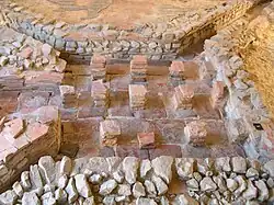 There is overwhelming evidence that the north wing was completely destroyed in a fire around 270 AD. For instance, some of the rubble from the collapsed roof as well as its tiles and melted fittings were scattered on the ground floor, while some of the burnt doors remained standing.[4] There is also evidence of extreme heat that can be found on the tiles, which were discoloured. The fire did not consume the east wing of the palace, although the decision was later made to demolish the baths located in that wing around 290 AD.[4]