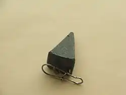 A pyramid sinker made of lead, nowadays widely regarded as too toxic a material