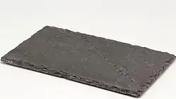 In geology, fissility is the ability or tendency of a rock to split along flat planes of weakness (“parting surfaces”).[1] These planes of weakness are oriented parallel to stratification in sedimentary rocks.[2] Fissility is differentiated from scaly fabric in hand sample by the parting surfaces’ continuously parallel orientations to each other and to stratification. Fissility is distinguished from scaly fabric in thin section by the well-developed orientation of platy minerals such as mica. Fissility is the result of sedimentary or metamorphic processes.