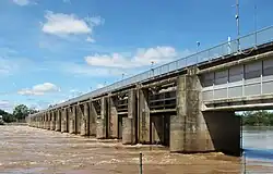 The Fitzroy River Barrage is a mid-river dam system constructed on the Fitzroy River in Rockhampton, Queensland, Australia, which separates the tidal river into saltwater and freshwater sections.[1] It was designed to dam the river, enabling a permanent water supply to be stored for the city and its surrounding communities as well as providing an agricultural water supply for registered rural users.[1]