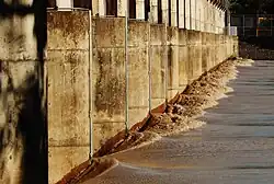 The barrage also incorporates a fish ladder to allow fish to get from the tidal water to the fresh water and vice versa.[9] The construction of the barrage had a significant impact on native fish species as it prevented them from accessing breeding, spawning and nursery habitats.[9] Although a fish passage was incorporated into the barrage during its construction, it was not very effective as it was designed for North American salmon. A new vertical fish passage was installed in 1996 which was an improvement on the original but it was only effective for eight hours each day during the high tides.[9] A new more effective $500,000 fish ladder was installed at the barrage in 2016, replacing the one which was installed in 1996.[9]