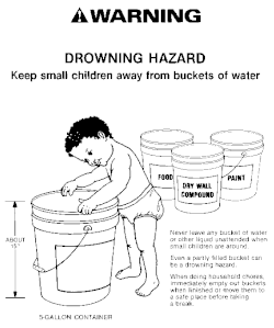In an effort to reduce the of small children falling in and drowning, a visual warning label is often present on the side of five-gallon buckets.[5]