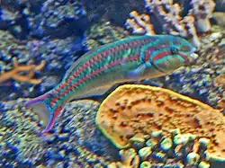 The fivestripe wrasse (Thalassoma quinquevittatum), also known as the red-ribbon wrasse, is a species of marine ray-finned fish, a wrasse, from the family Labridae. It is found in the Indo-Pacific region.