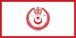 | Design | A red field defaced with a white crescent and star and two white kris and spears. |