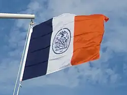 | Design | A vertical tricolor of blue, white, and orange with a modified blue version of the Seal of New York City in the center |