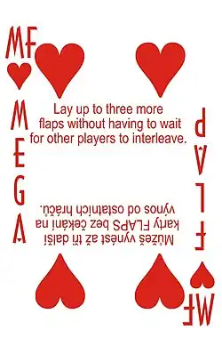 Flaps is a commercial card game released in 1994, and is a shedding-type card game for two or more players. It is based on the game Crazy Eights,[1] and uses a custom deck of playing cards with additional rules written in both English and Czech. The game has seven levels, each level adding new functionality.