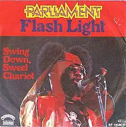 "Flash Light" (also called "Flashlight") is a song by American funk band Parliament, released on January 28, 1978 by Casablanca Records as the second single from their sixth album, Funkentelechy Vs. the Placebo Syndrome (1977).[2] It is written by George Clinton, Bernie Worrell and Bootsy Collins, and is the final song on the album, finishing its story of the group’s quest to defeat the evil Sir Nose d'Voidoffunk, coercing him to dance. "Flash Light" was the first No. 1 R&B hit on the US Billboard chart by any of the P-Funk groups and also spent four months on the US pop chart, peaking at No. 16.[3][2] The track became Parliament's second certified million-selling single, following "Give Up the Funk (Tear the Roof Off the Sucker)".[4] It also gave Casablanca Records its first No. 1 R&B hit. In New Zealand, the song reached No. 3[5] and is ranked as the No. 8 hit of 1978.[5] "Flash Light" also charted in Canada (No. 24) and reached No. 3 on WLS-AM in Chicago.[6]