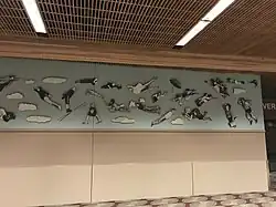 Flight Patterns consists of approximately 176 black and white photographic cutouts of people, whimsically posed as if they were flying, on seven mural panels originally installed on the walls of Concourse A at Eugene Airport.[1][2][3]
