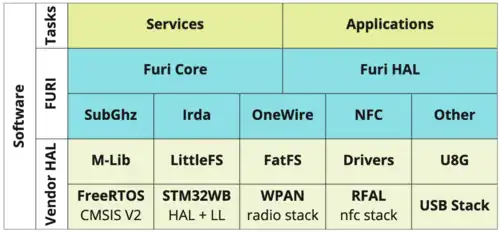 • FuriCore – provides an API for interaction with the scheduler and multithreading. FuriCore abstracts and extends the functionality of the FreeRTOS scheduler and adds additional system primitives.