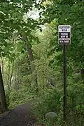 Cadets refer to it as "Flirtie Walk", or just "Flirtie". The cadet knowledge manual, known as Bugle Notes, refers to Flirtation Walk as a "scenic walk where only cadets and their escorts may go."[1] The trail was first used during the Revolutionary War to access the Great Chain that deterred British ships navigating the turn in the river. As it originally had a military application, this path was off limits to cadets until the 1840s. After the military garrison's purpose at West Point became obsolete, the trail was opened and encouraged to be used by cadets. As the academy grew in size in the mid-19th century, more visitors began to frequent the cadets. Given the limited transportation opportunities of the day and the lack of places for the young men of the academy to take their lady guests, the walk became a popular place to go. The administration of the academy allowed cadets the rare opportunity to have some privacy with their guests.[2] This policy is still traditionally held and signs are posted to keep visitors to the academy away from the trail. The signs read "Visitors must be accompanied by a cadet".