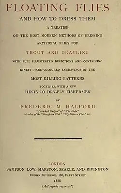 Halford's first book: Floating Flies and How to Dress Them (1886) was a concise and beautiful fly tying manual and fly pattern reference book, but contained only a brief chapter on how to actually fish with dry flies.[8]