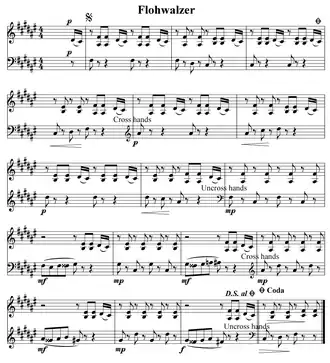 Flohwalzer (German: ['floːvaltsər] ⓘ, German for "Flea Waltz") is a simple piano piece, often one of the first learned because its fingering is simple and it allows beginners to perform a piece that is harmonically and rhythmically pleasing.
