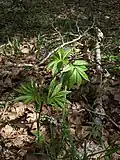 From an altitude of 900 m, the beech forest begins, with its highly characteristic flora. Beech dominates at this altitude, at least over a large part of the western half of the massif. In the east, particularly in the Haute-Loire, beech is replaced by Scots pine (drier climate). In some cold, damp areas, fir is mixed in with beech and may even become dominant[4] (Monts du Cantal, Artense, northern Margeride, Forez mountains). At any rate, it is at the mountain level that the Massif Central begins to stand out from the lowlands that surround it for the great richness of its flora. The species found will vary depending on whether the woodlands have a basaltic subsoil (basic rock) or a granitic subsoil (acid rock). In the former case, we'll come across calcicole flowers such as the very precocious Snowdrop, Montane Knapweed, February daphne, Yellow thistle (rarer), Five- or Seven-leaved Cardamine or Cacaliaster Groundsel, and sometimes, paradoxically, calcifugous species (due to the relatively neutral nature of basalt, which contains little silica or calcium carbonate in a natural state, these elements being in the form of silicates).[5] On granite, on the other hand, there are no calcicolous species. Acidophilous species include Wood ragwort (very common in Forez), Prenanthes purpurea, Common cow-wheat, and Small cow-wheat. However, the vast majority of flowers thrive in both types of soil: Sweet woodruff, Martagon lily, two-leaved cornflower, Snow-white wood-rush, Common foxglove, Herb Paris, Austrian Doronicum (Doronicum austriacum), Alpine squill, Pyrenean squill (west of the massif), whorled Solomon's seal, and Large-flowered Calament ("Aubrac tea"). Climatic influences also play a part: for example, rare plants with an Atlantic affinity such as the Welsh poppy[6] (Meconopsis cambrica) can be found in the forests of the western part of the massif.