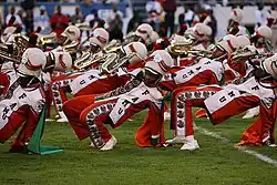 In 2011 Robert Champion, a band member, was beaten to death in a hazing incident. Two faculty members resigned in connection with a hazing investigation and thirteen people were charged with felony or misdemeanor hazing crimes;[22] one student, a band member, was convicted of manslaughter and hazing charges and sentenced to six years in prison.[23] The scandal resulted in the resignation of FAMU's president and played a role in the university's regional accreditor, the Southern Association of Colleges and Schools, placing FAMU on probation for one year.[24][25][26]