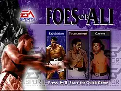 Foes of Ali is a boxing video game that was developed by Gray Matter and published by EA Sports.[2] It was released near the end of 1995[1] exclusively for the 3DO system. It was one of the first boxing games to render matches using 3D graphics. Thus, boxers in the game could be shown to move 360 degrees around the ring in a more convincing fashion than had previously been possible using 2D sprites. The gameplay bears many similarities to that featured in 4D Sports Boxing.