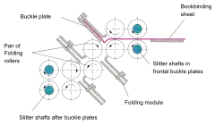 Buckle folders work by feeding in paper via high friction rollers until it hits a stop and cannot be pushed in further; the reaction of the paper is to buckle. Another pair of rollers grips the buckled portion of the paper and pulls it through. The paper is squeezed between the rollers in the process which results a fold.[1]