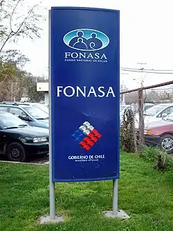 Fondo Nacional de Salud, also known as FONASA, is the financial entity entrusted to collect, manage and distribute state funds for health in Chile. It is funded by the public (7% of employees' monthly income).[1] It was created in 1979 by Decree Law No. 2763.