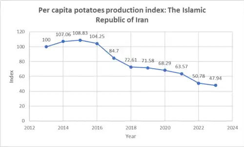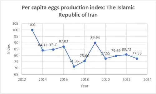 According to the Food and Agriculture Organization of the United Nations Iran suffers a major decline in the food production per capita:[56]
