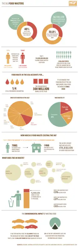 - ^ "One-Third of Food Is Lost or Wasted: What Can Be Done". news.nationalgeographic.com. October 13, 2014. Archived from the original on 2016-04-24. Retrieved 2016-04-25.